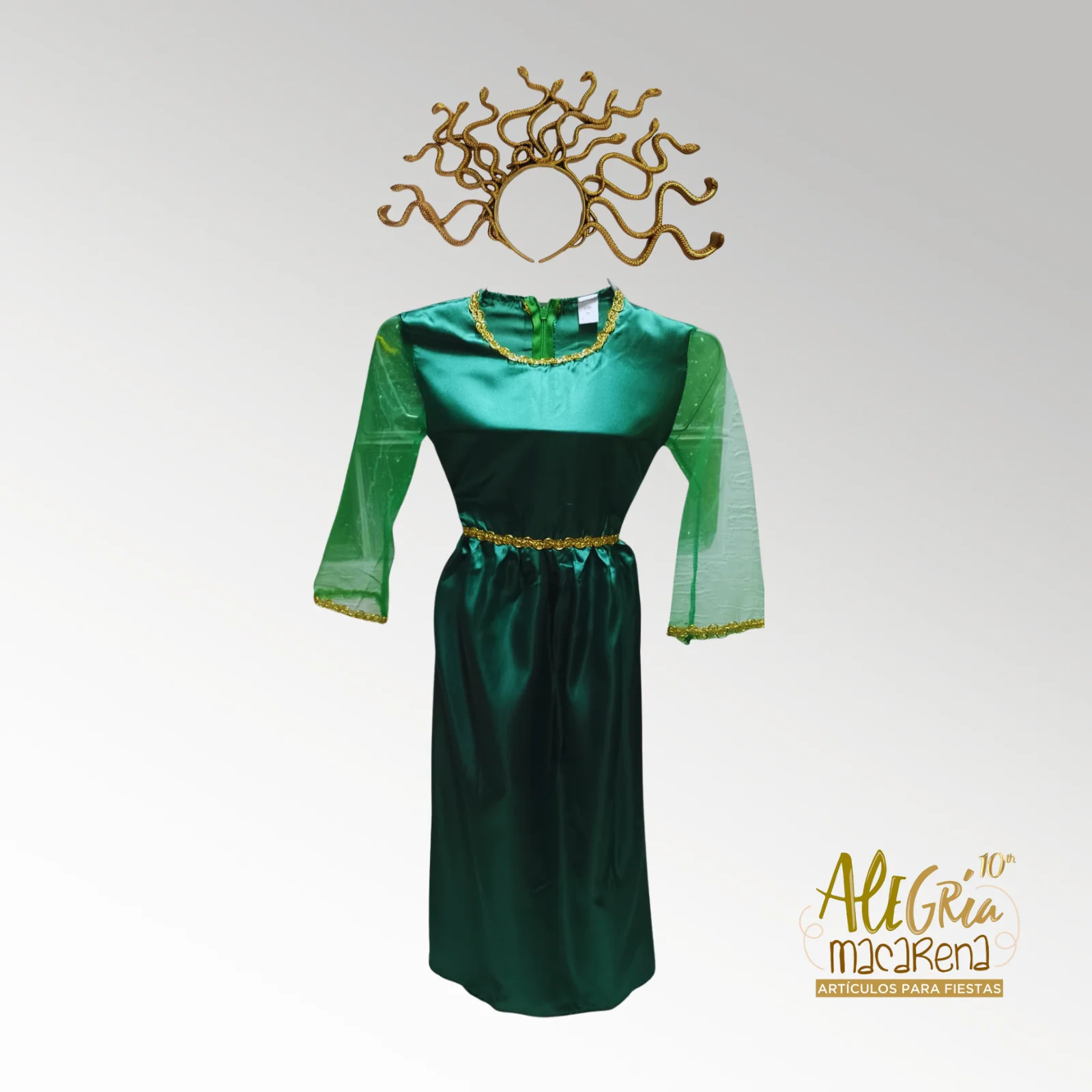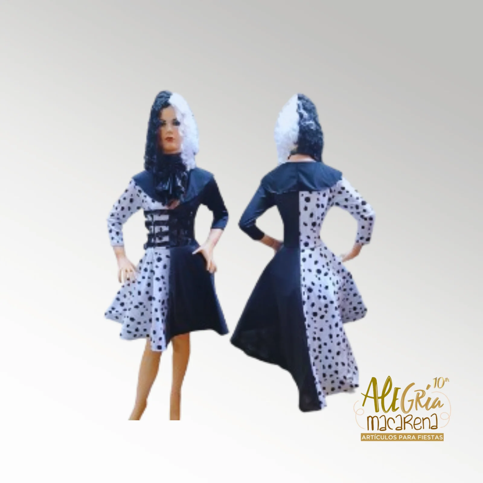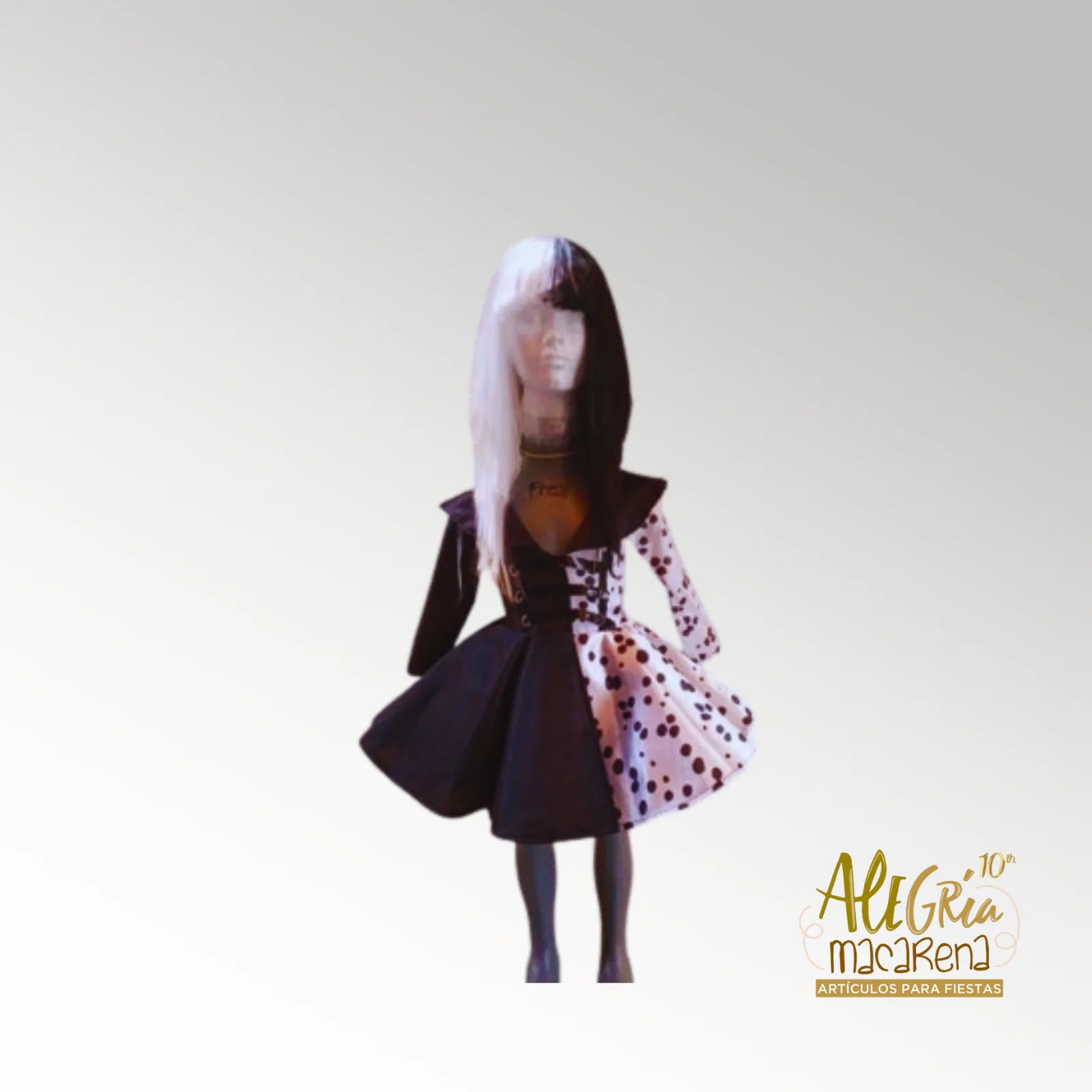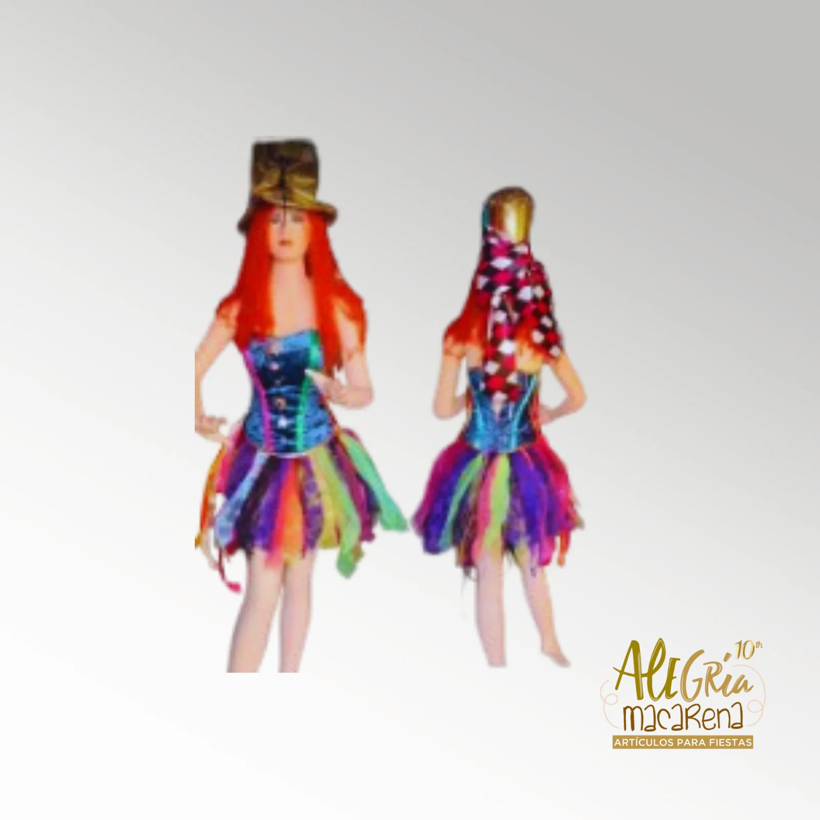 Incluye Vestido, cuello, diadema, antifaz, mallas, muñequera y tobillera.
