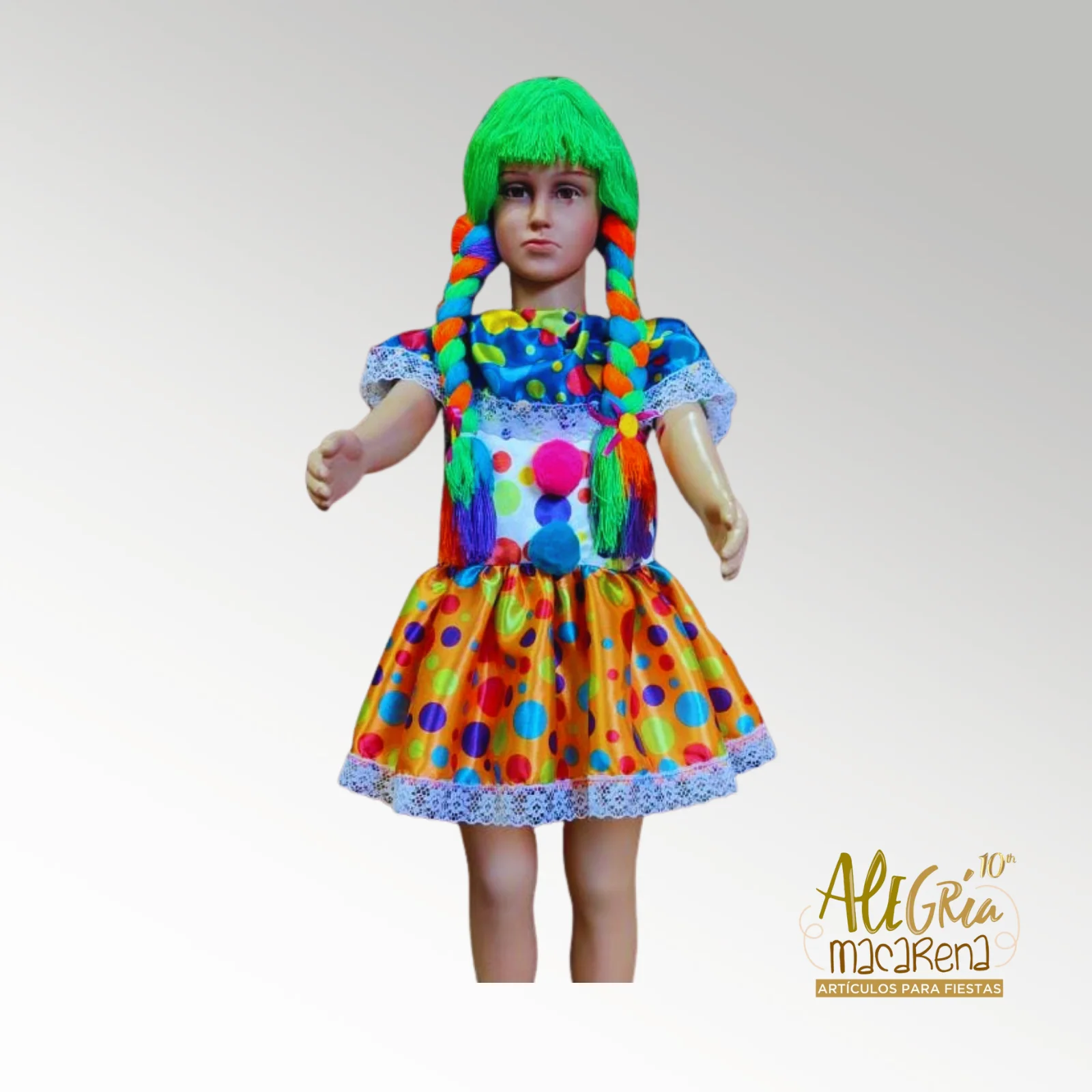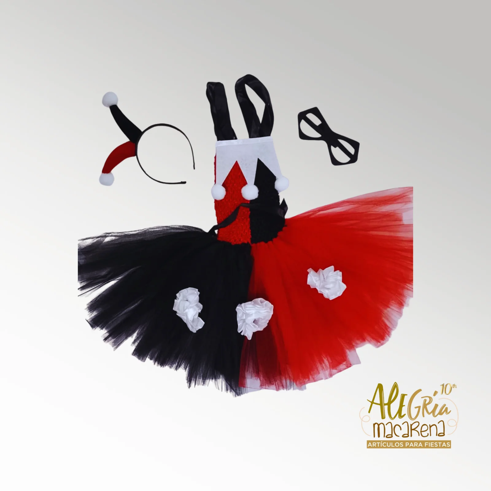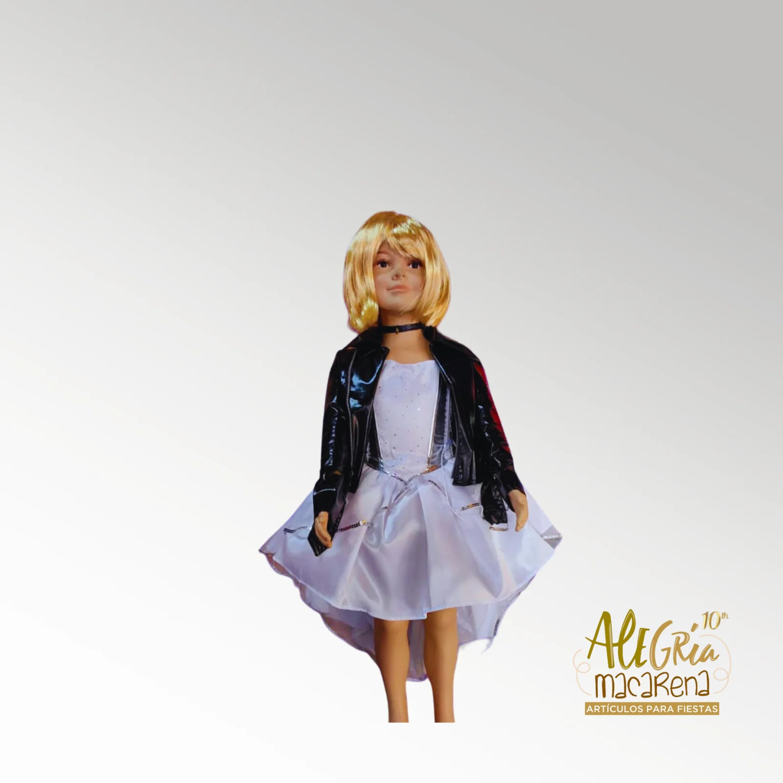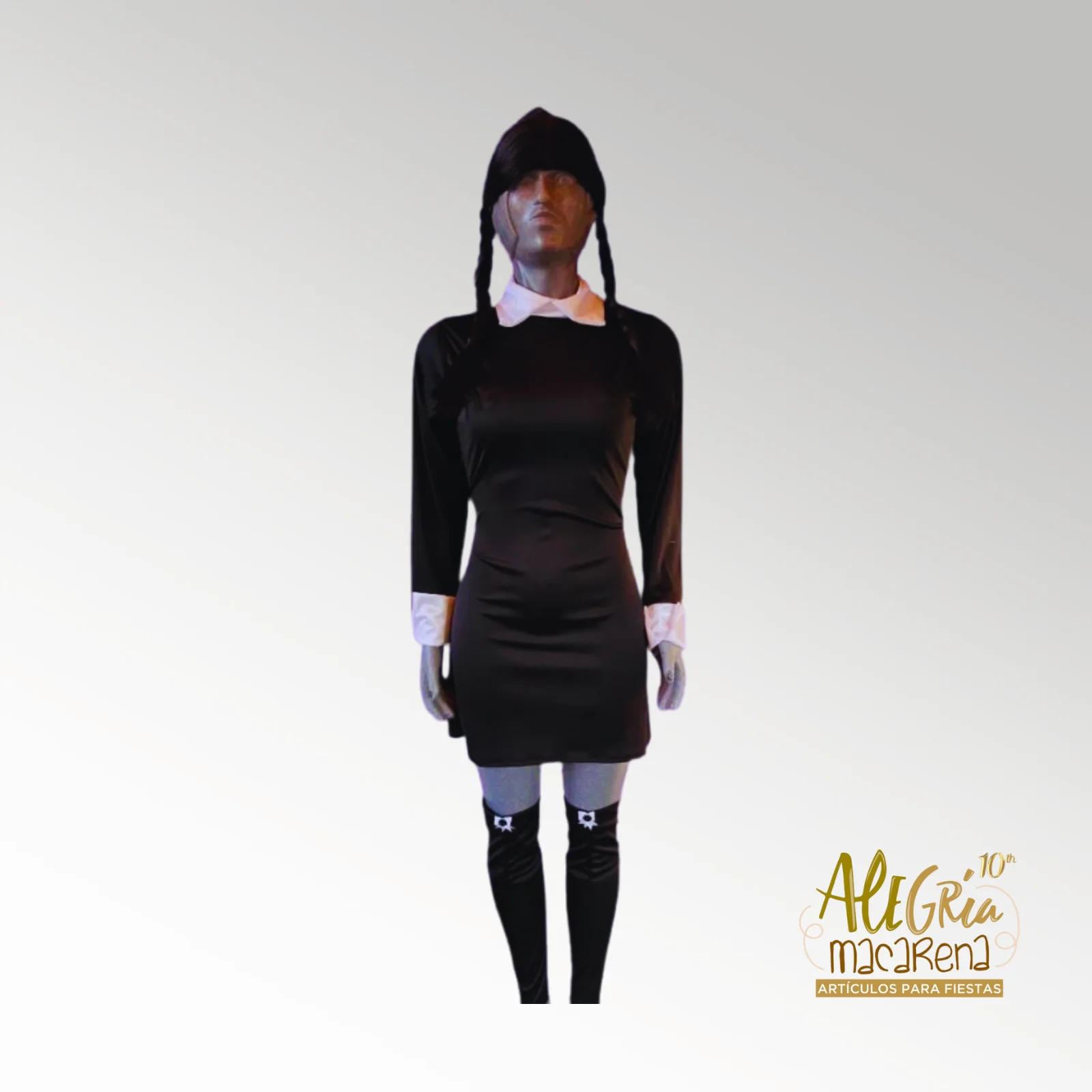 Incluye Vestido, cuello, diadema, antifaz, mallas, muñequera y tobillera.