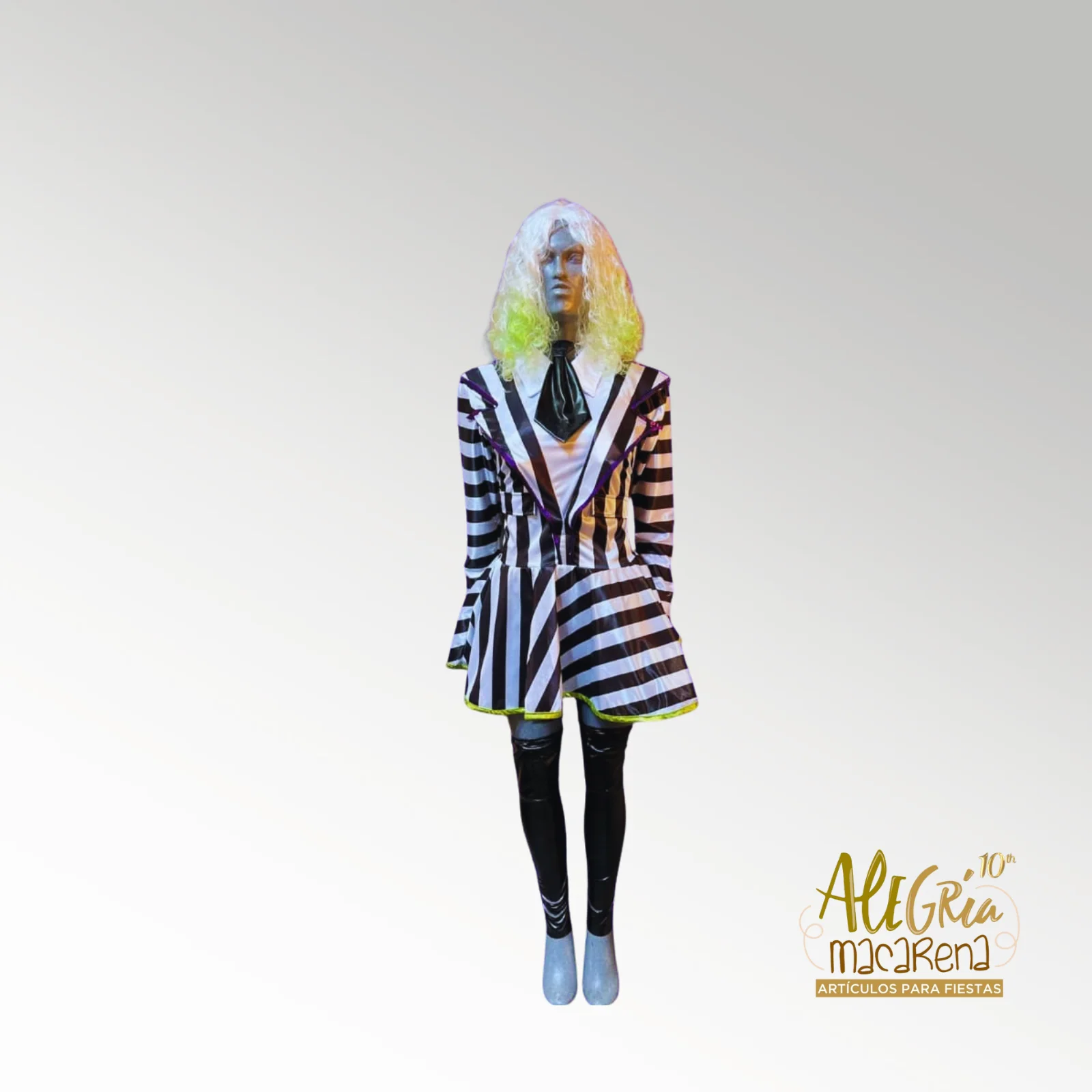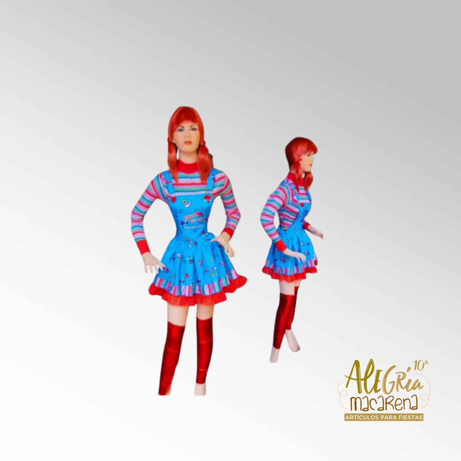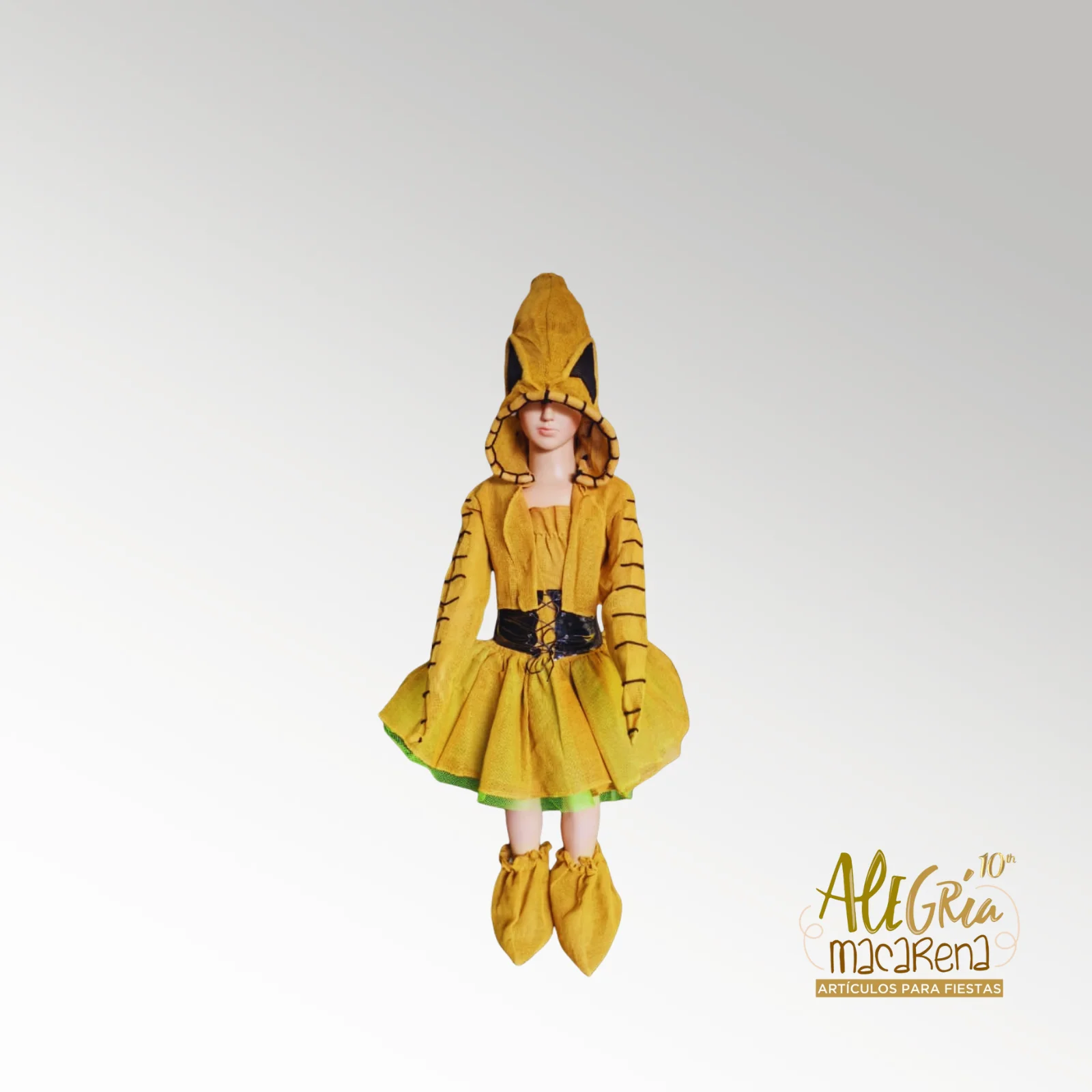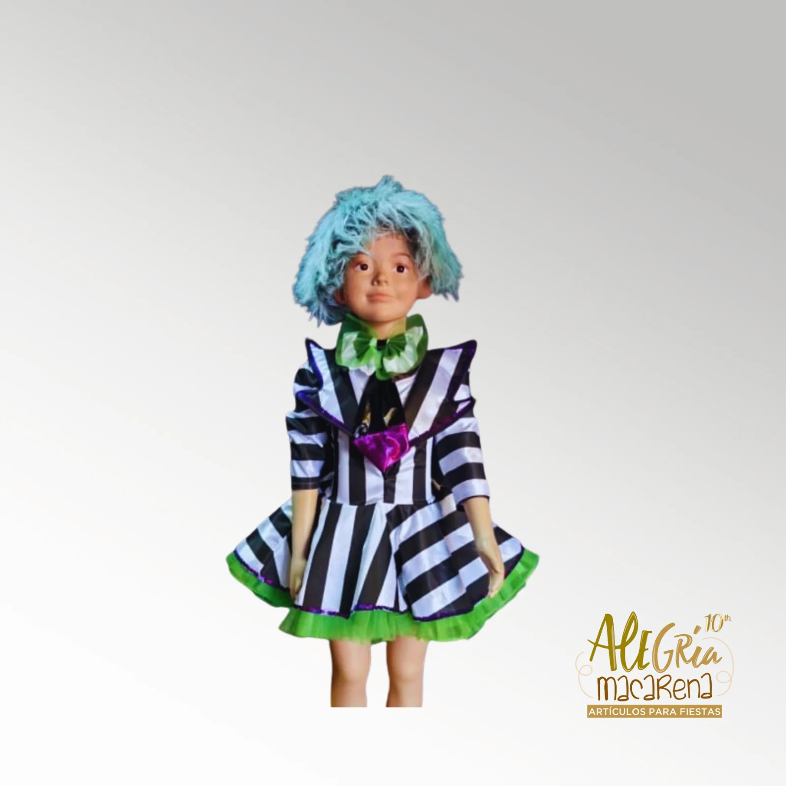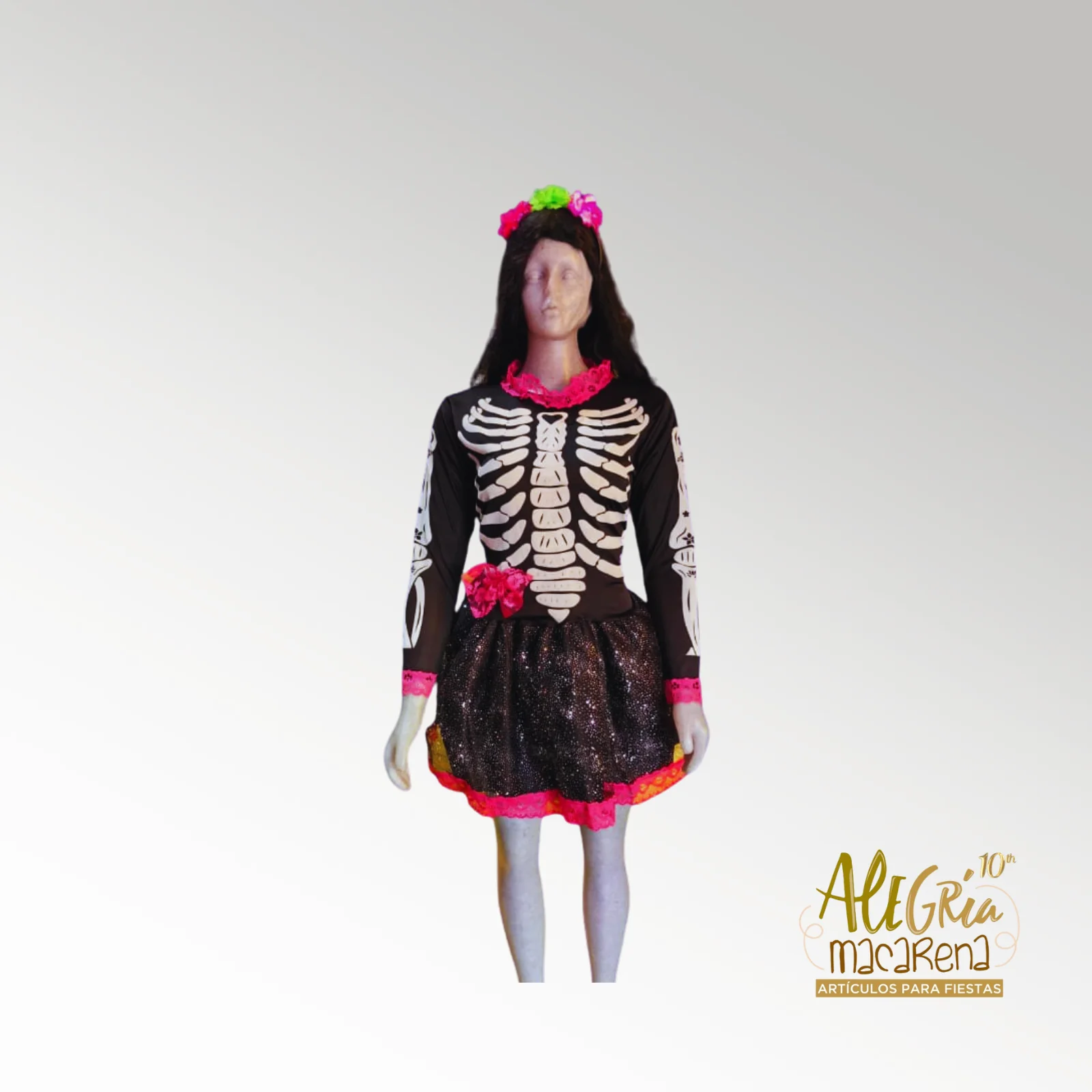 Incluye Vestido, cuello, diadema, antifaz, mallas, muñequera y tobillera.