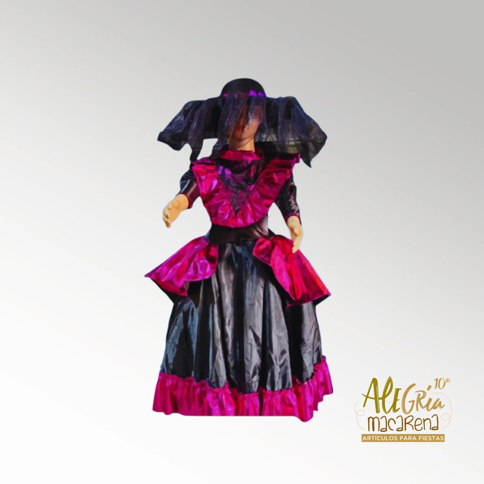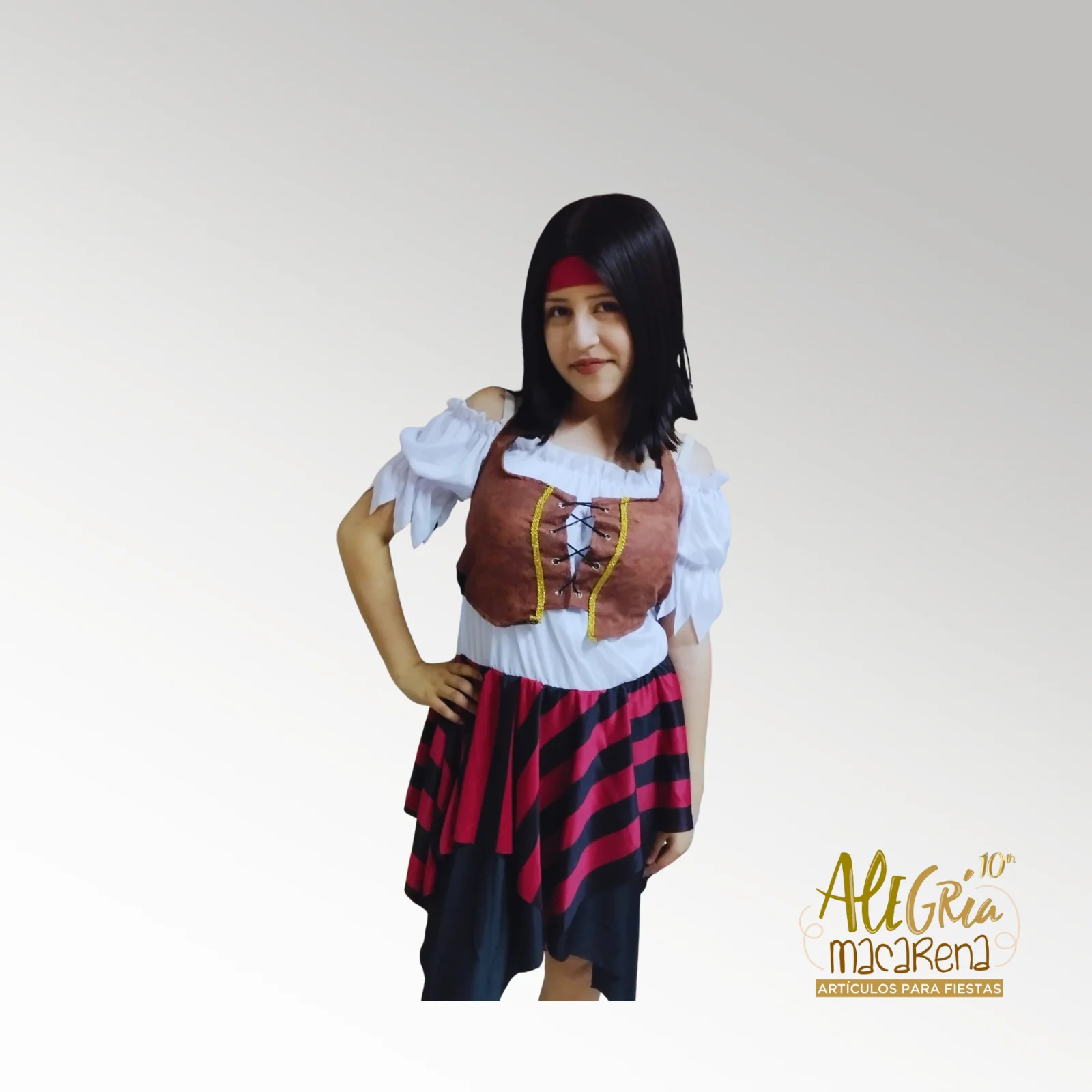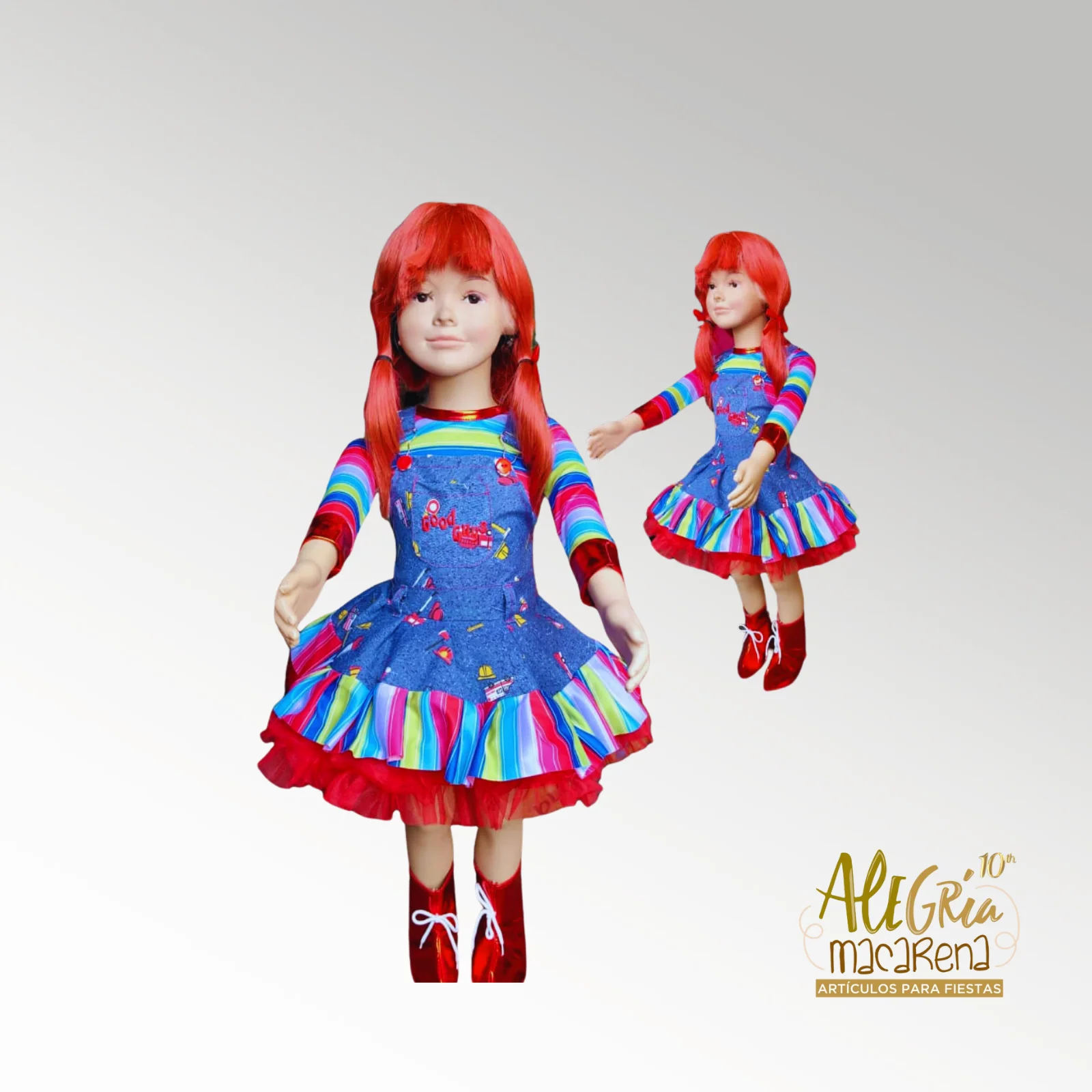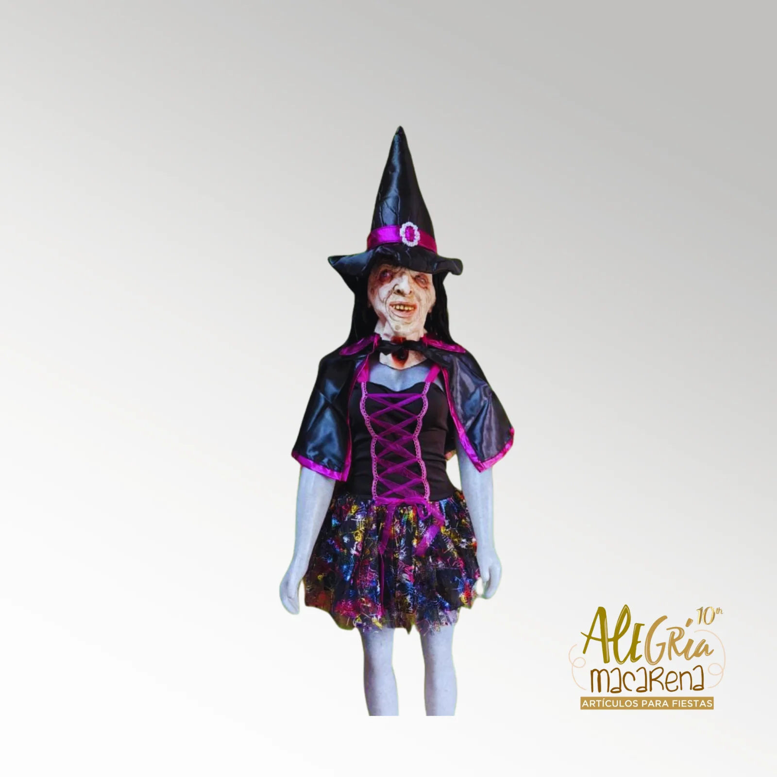 Incluye Vestido, cuello, diadema, antifaz, mallas, muñequera y tobillera.