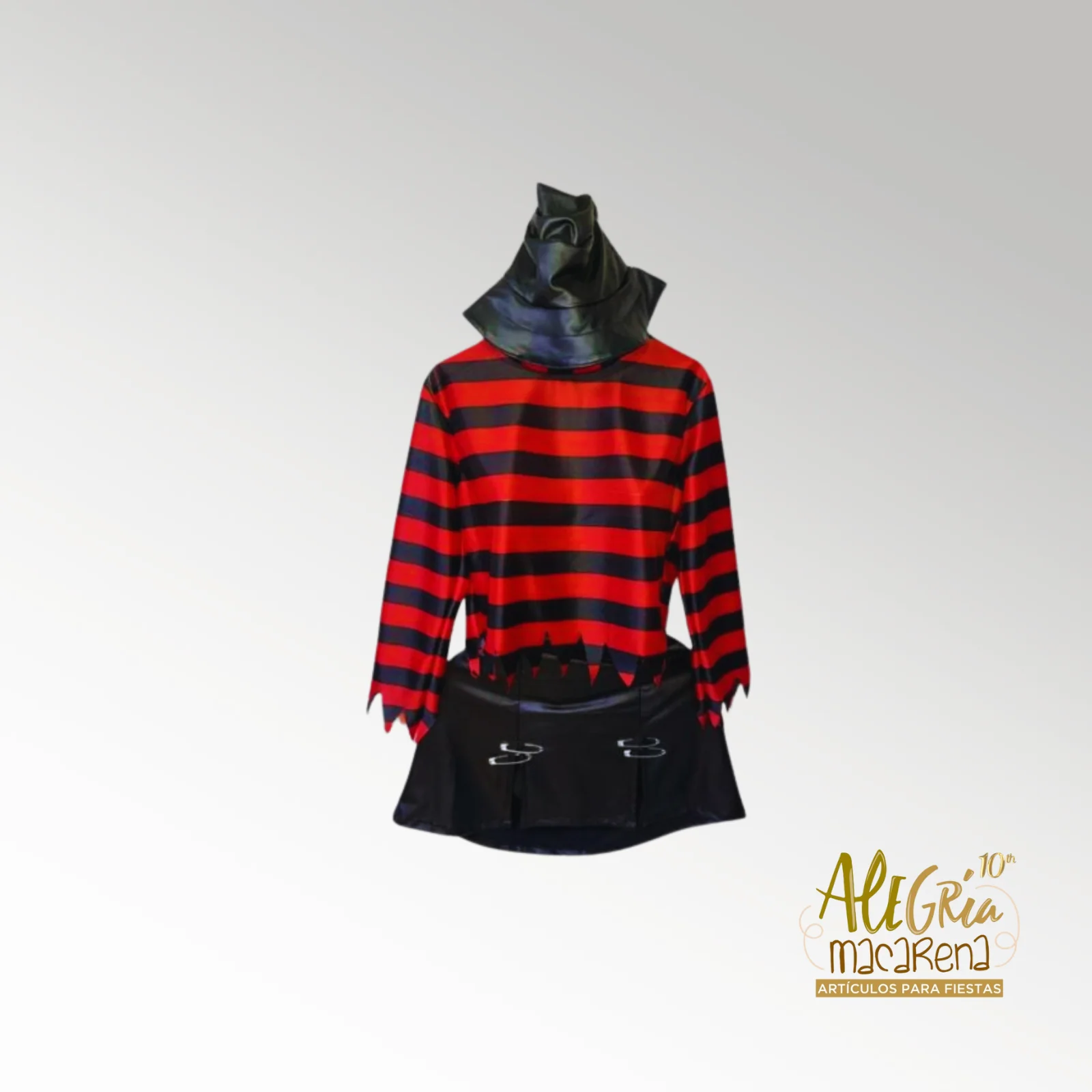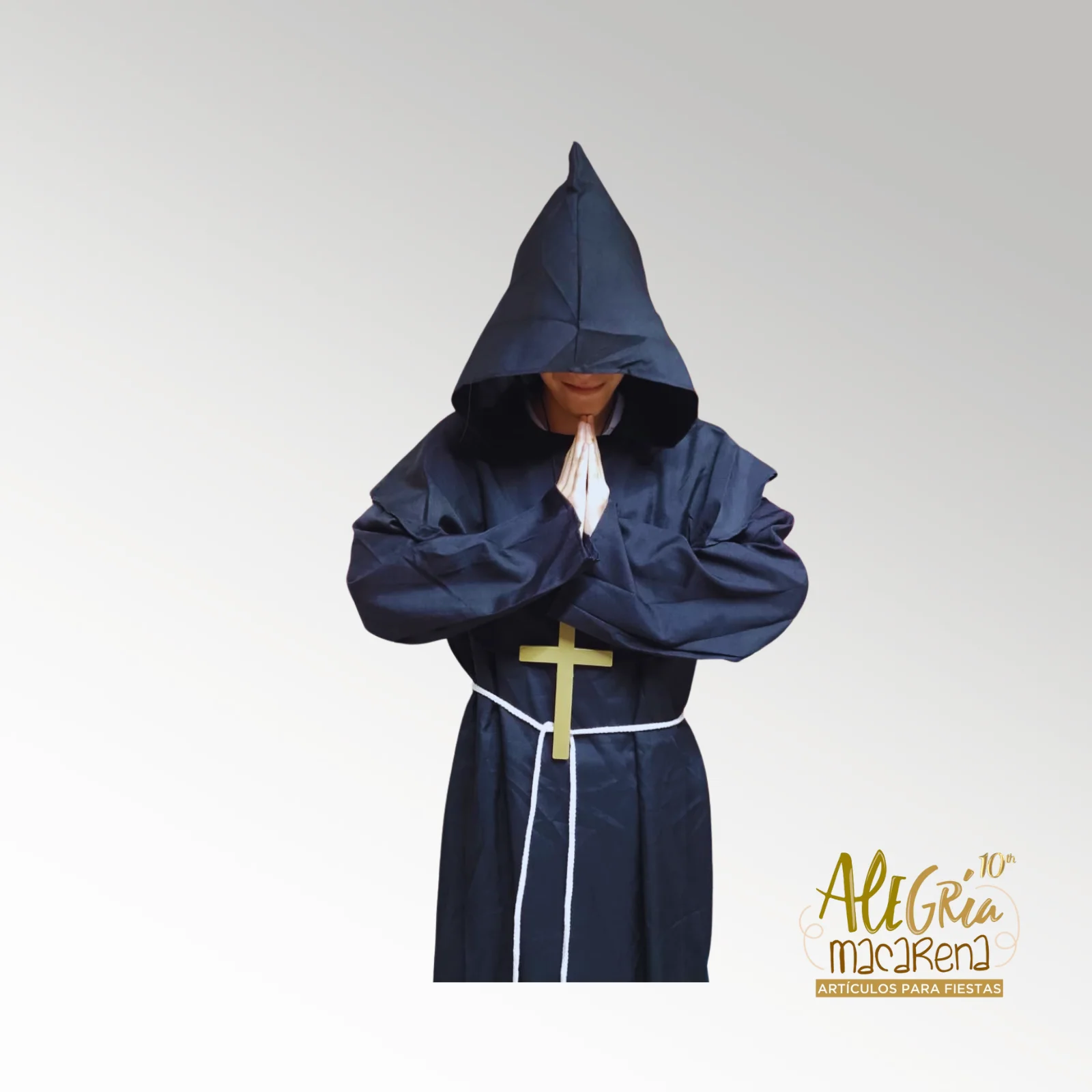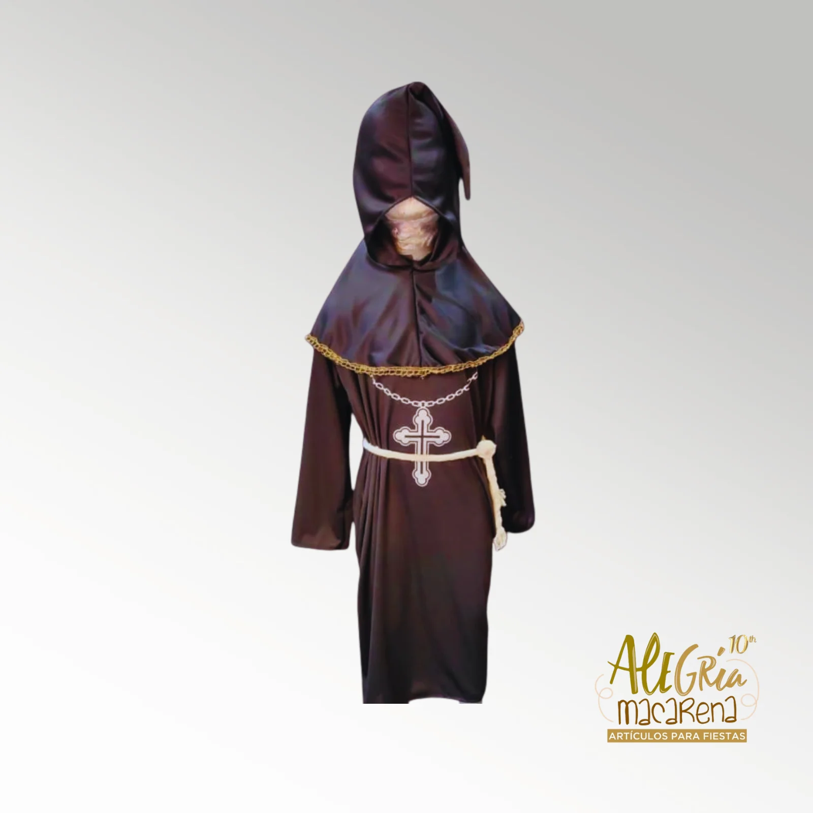 Incluye túnica, cinturón, cuello, muñequeras y sombrero.
