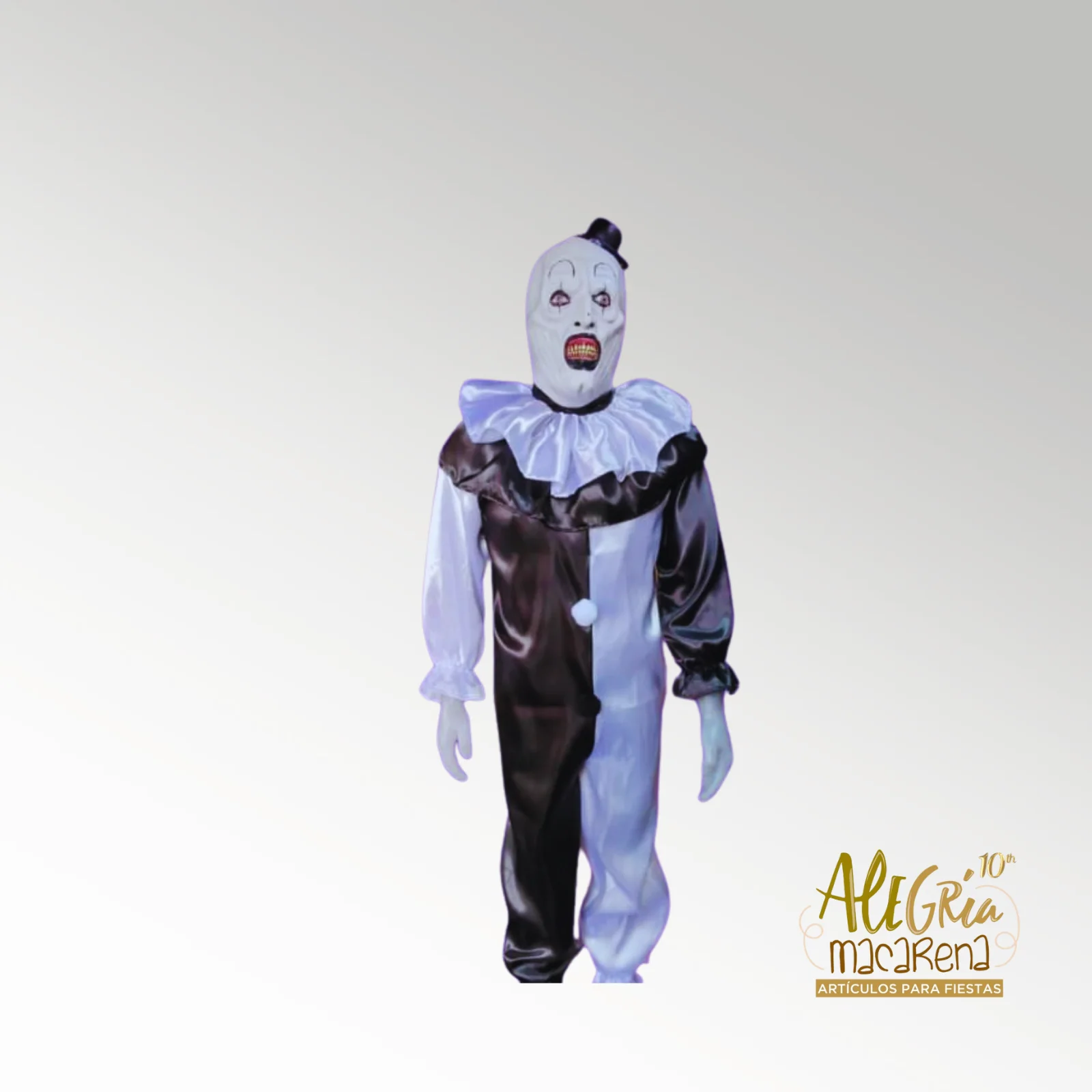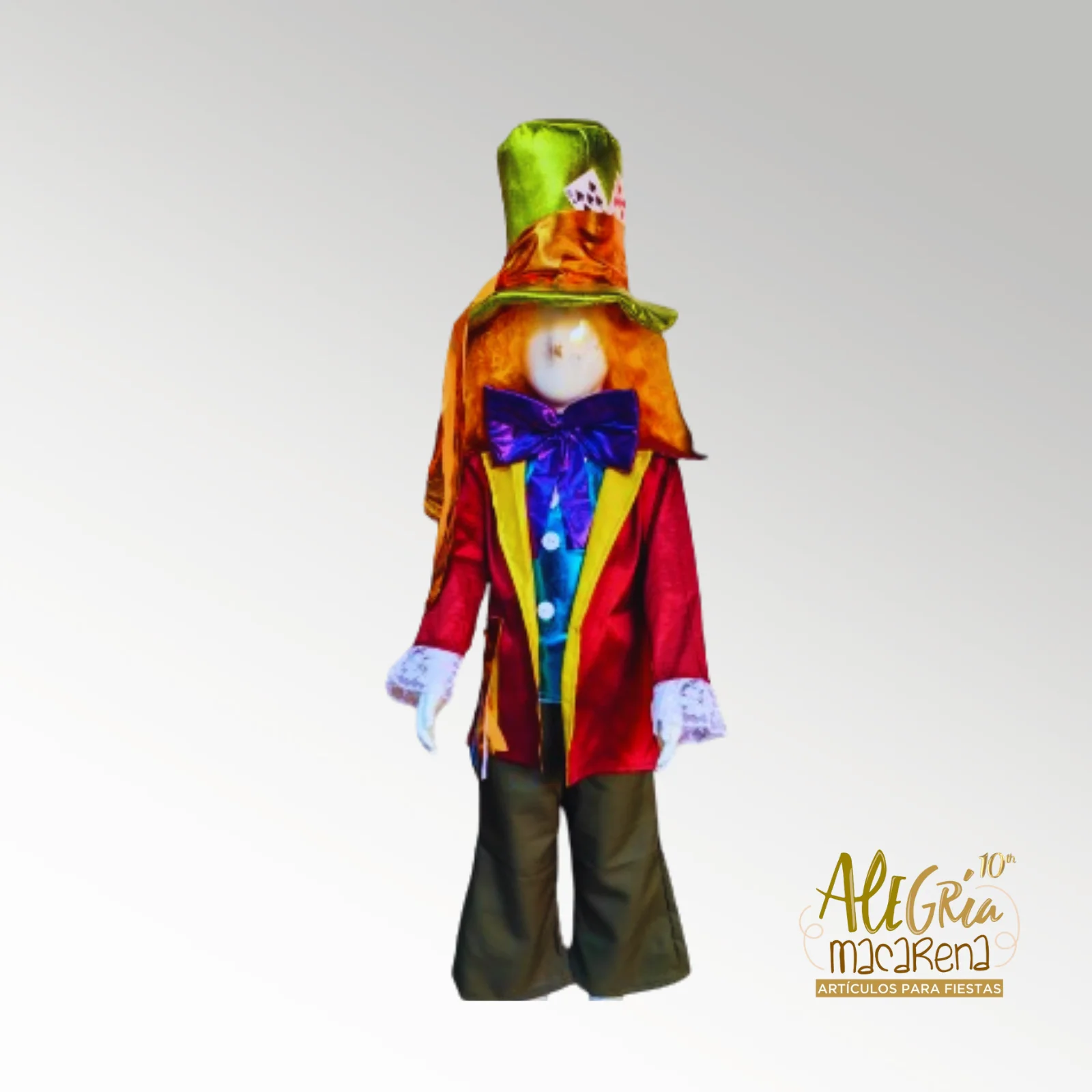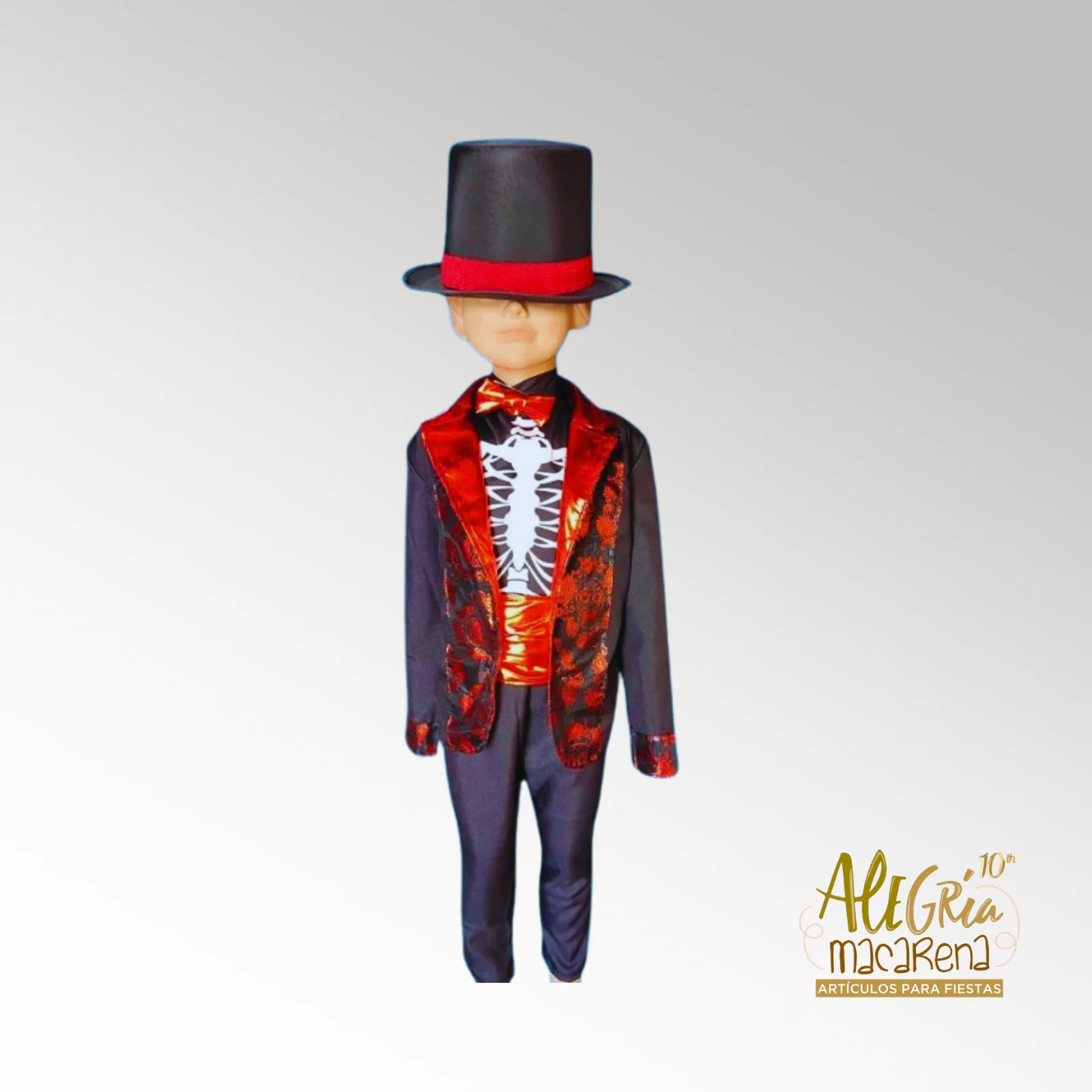 Incluye pantalón, camisa, chaleco, saco, moño y sombrero.
