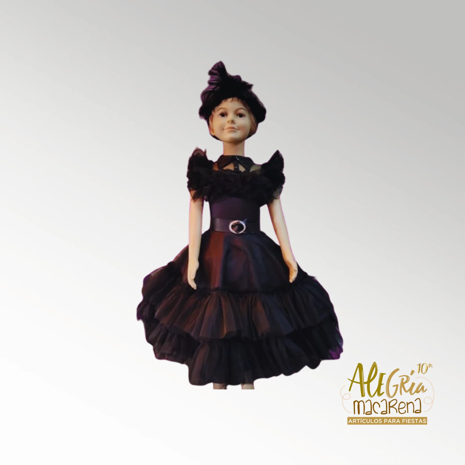 Incluye vestido, cinturón, cuello, diadema y muñequeras.
