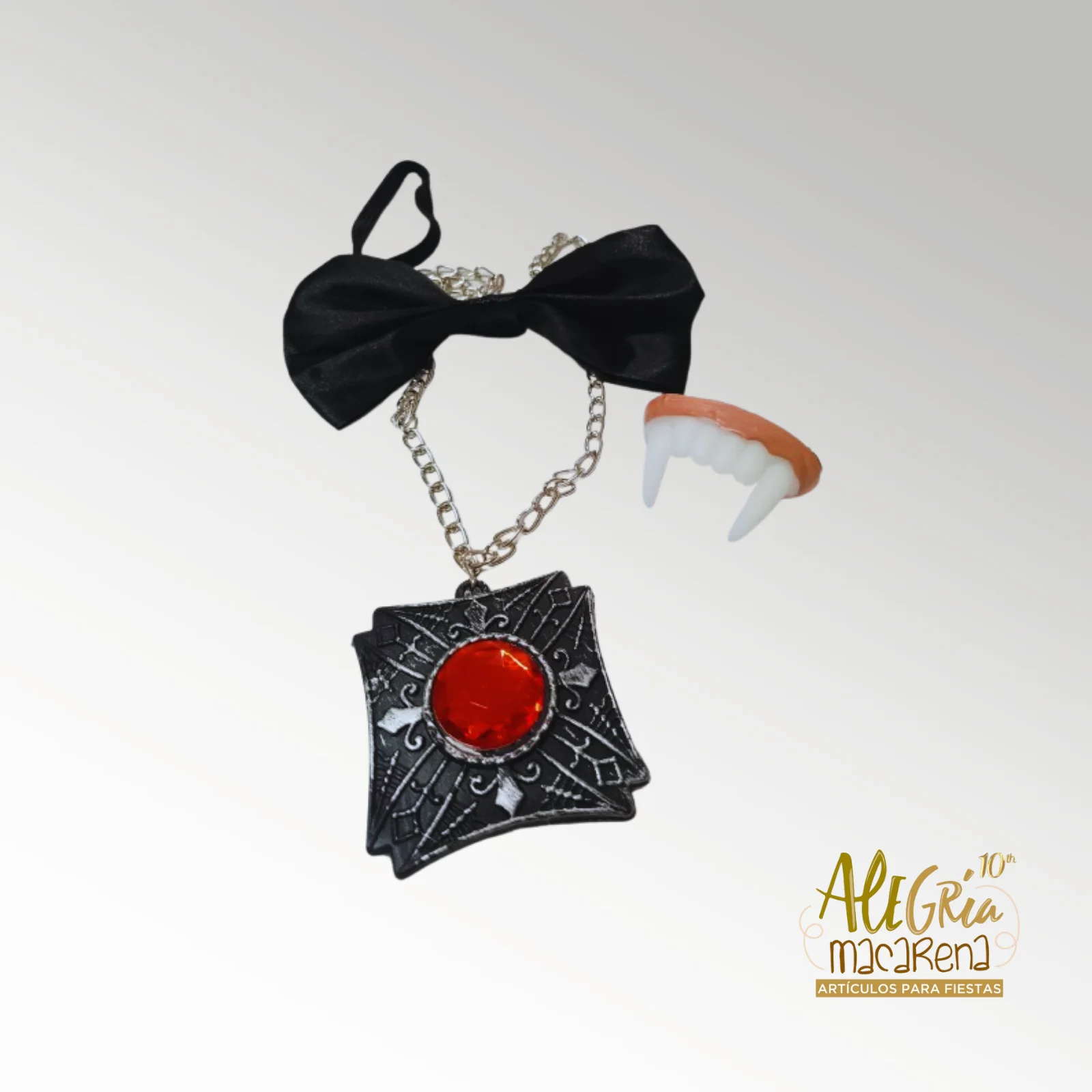 Kit de Vampiro incluya: moño, colmillos y medallón.